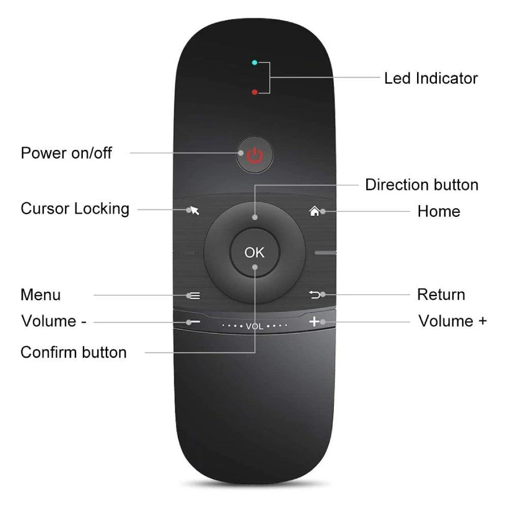 Using 2.4G wireless technology, the air mouse allows precise cursor movement, making it ideal for browsing, typing, gaming, and media playback. The built-in mini keyboard on the back enables fast text input, while the IR remote function supports basic TV and device control.