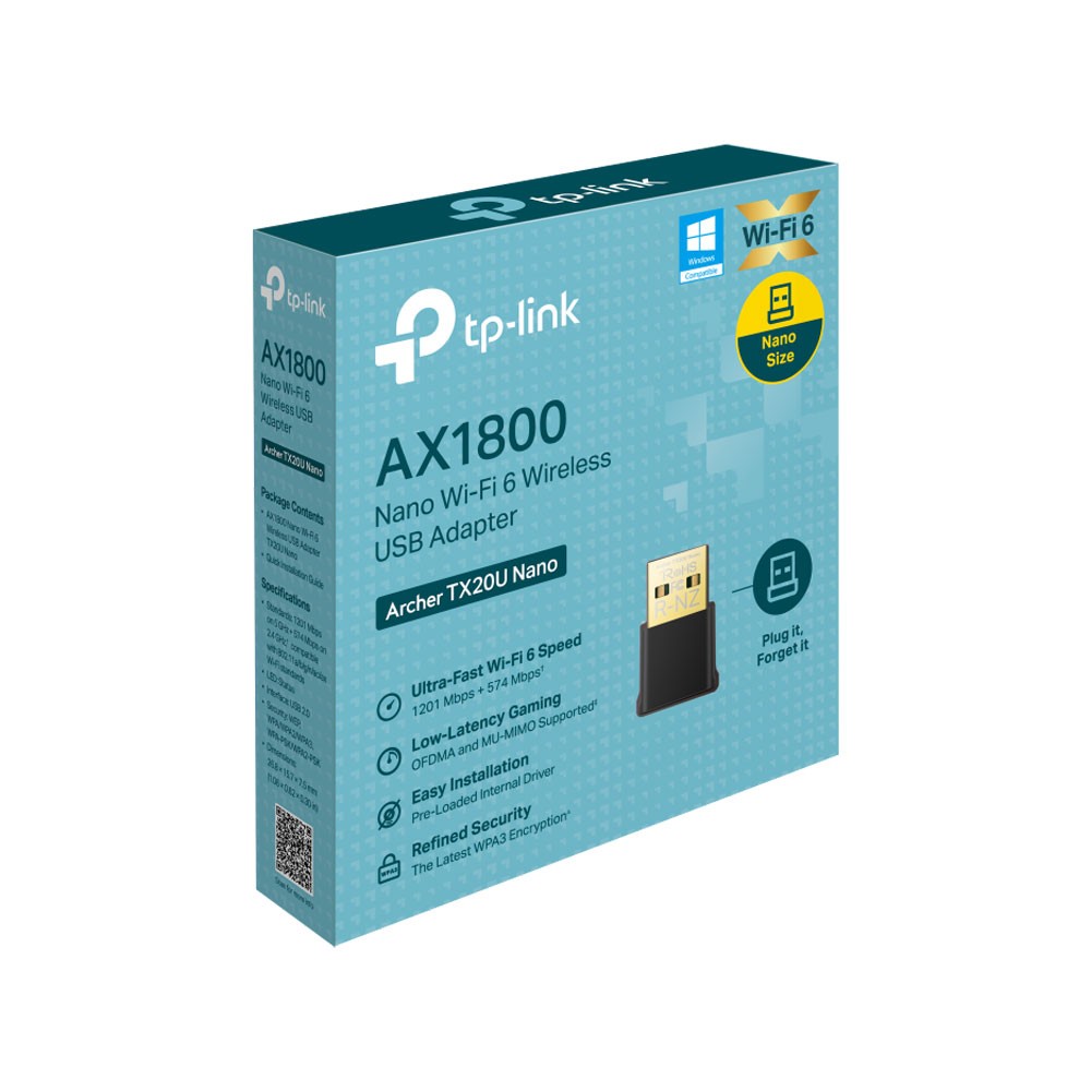 The TP-Link TX20U Nano AX1800 is a high-performance Wi-Fi 6 USB adapter that delivers ultra-fast wireless speeds and advanced network efficiency for desktops and laptops.